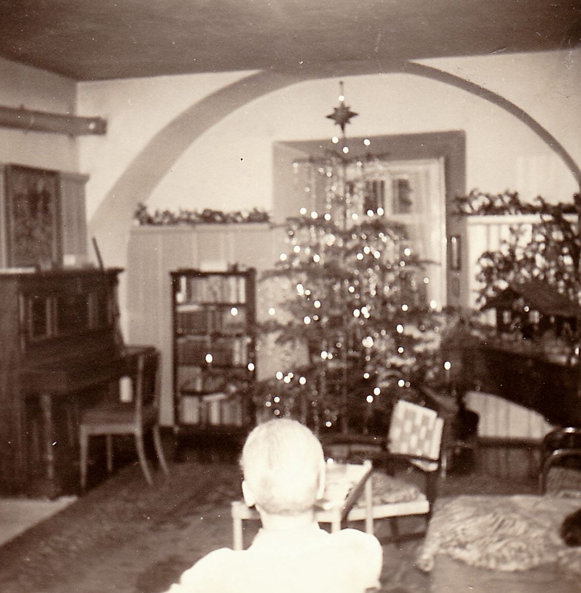 Eine Orgel brummte, ich betrat eine kleine Kirche nahe am Wilhelmsplatz. Alle Stühle waren schon besetzt, ich blieb am Eingang stehen. Lange starrte ich auf die beiden Weihnachtsbäume, die neben dem Altar brannten, und kniff mich in die Finger. Als dann aber "O du fröhliche …" angestimmt wurde, fühlte ich plötzlich wie etwas Heißes in mir, die Lichter fingen merkwürdig an zu flimmern, und ich rannte hinaus.