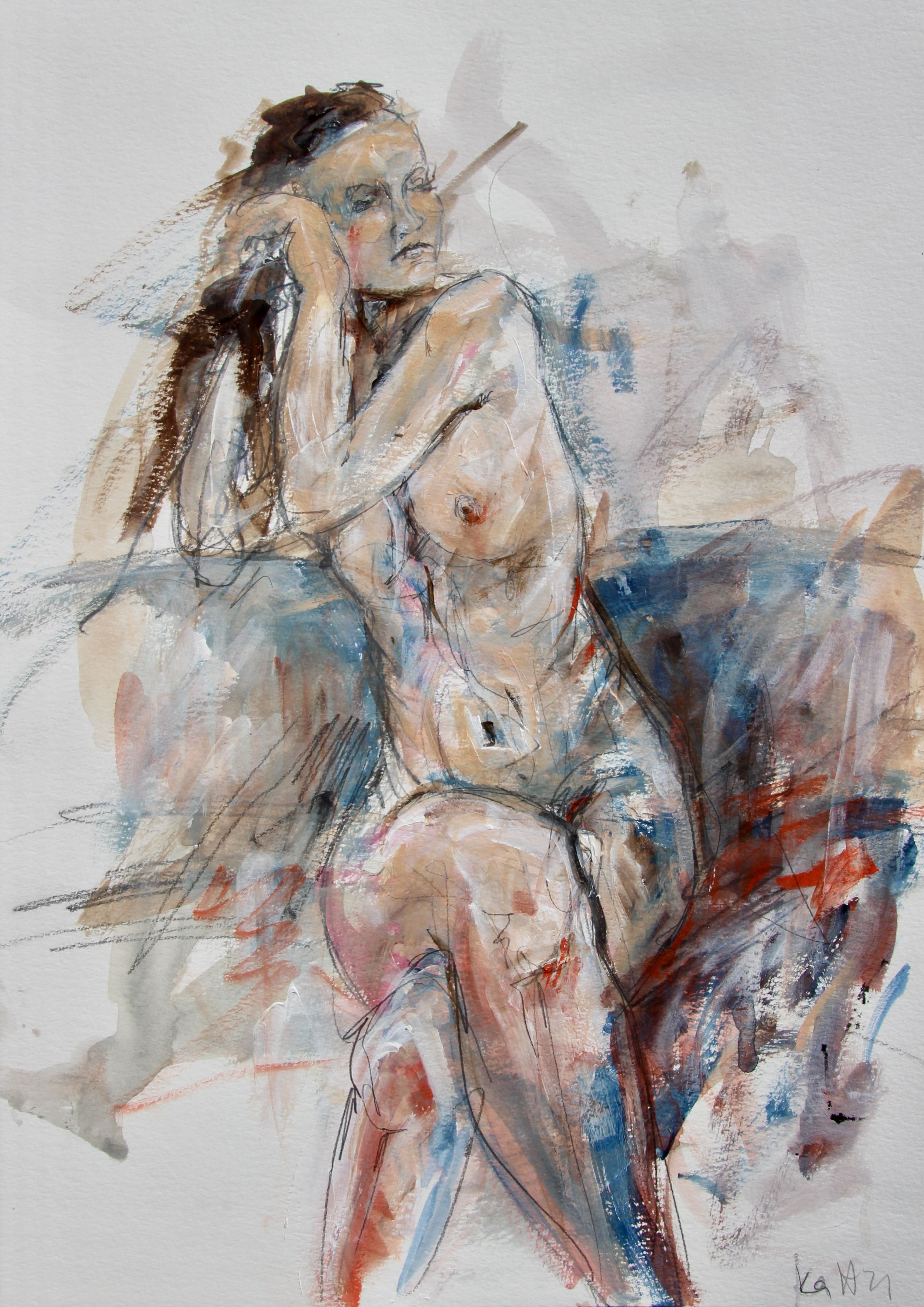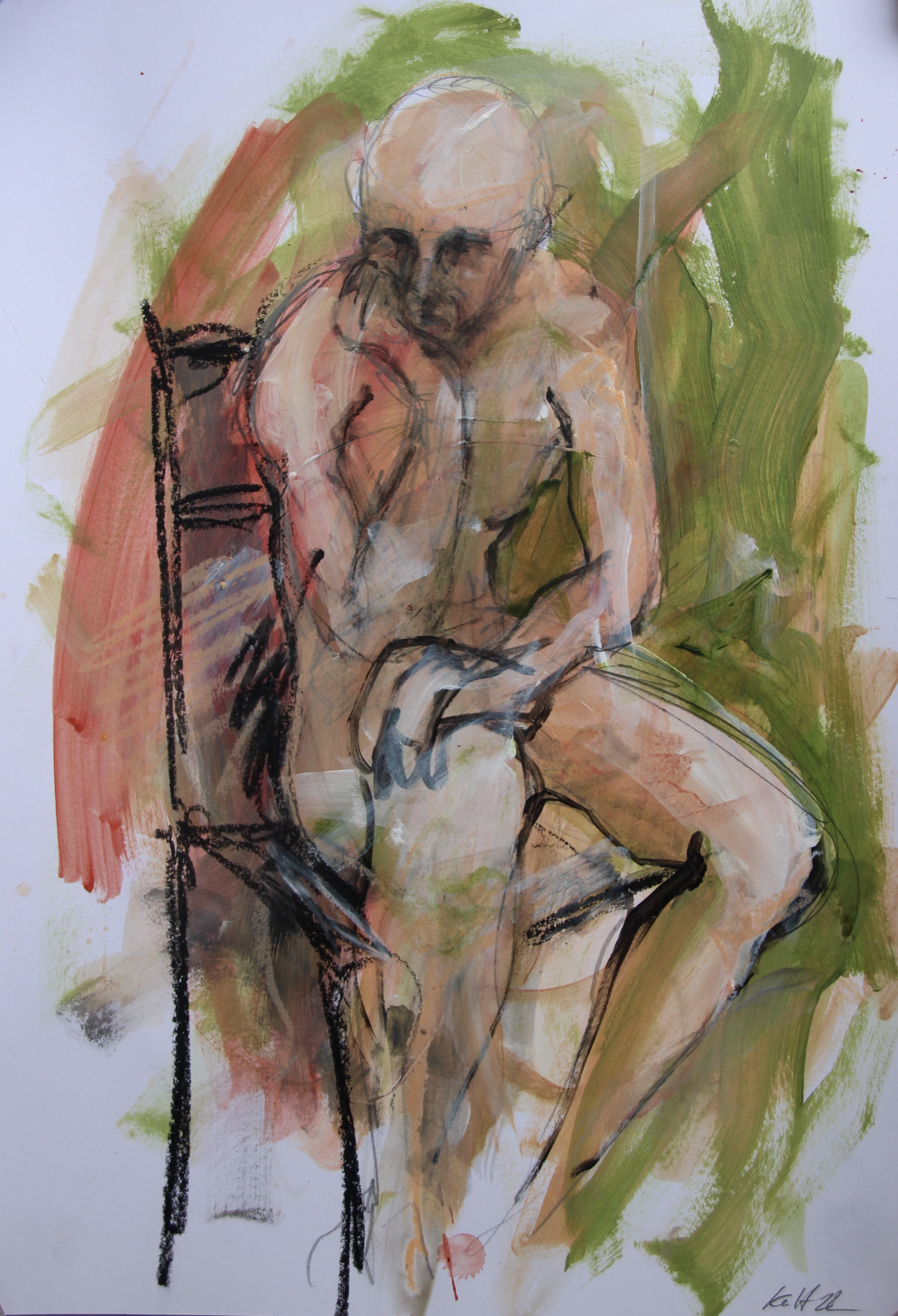 Acrylfarbe / Bleistift / Kohle und Kreide auf Zeichenkarton, Firnis, 2022, 42 x 29,5 cm, 220 Euro
