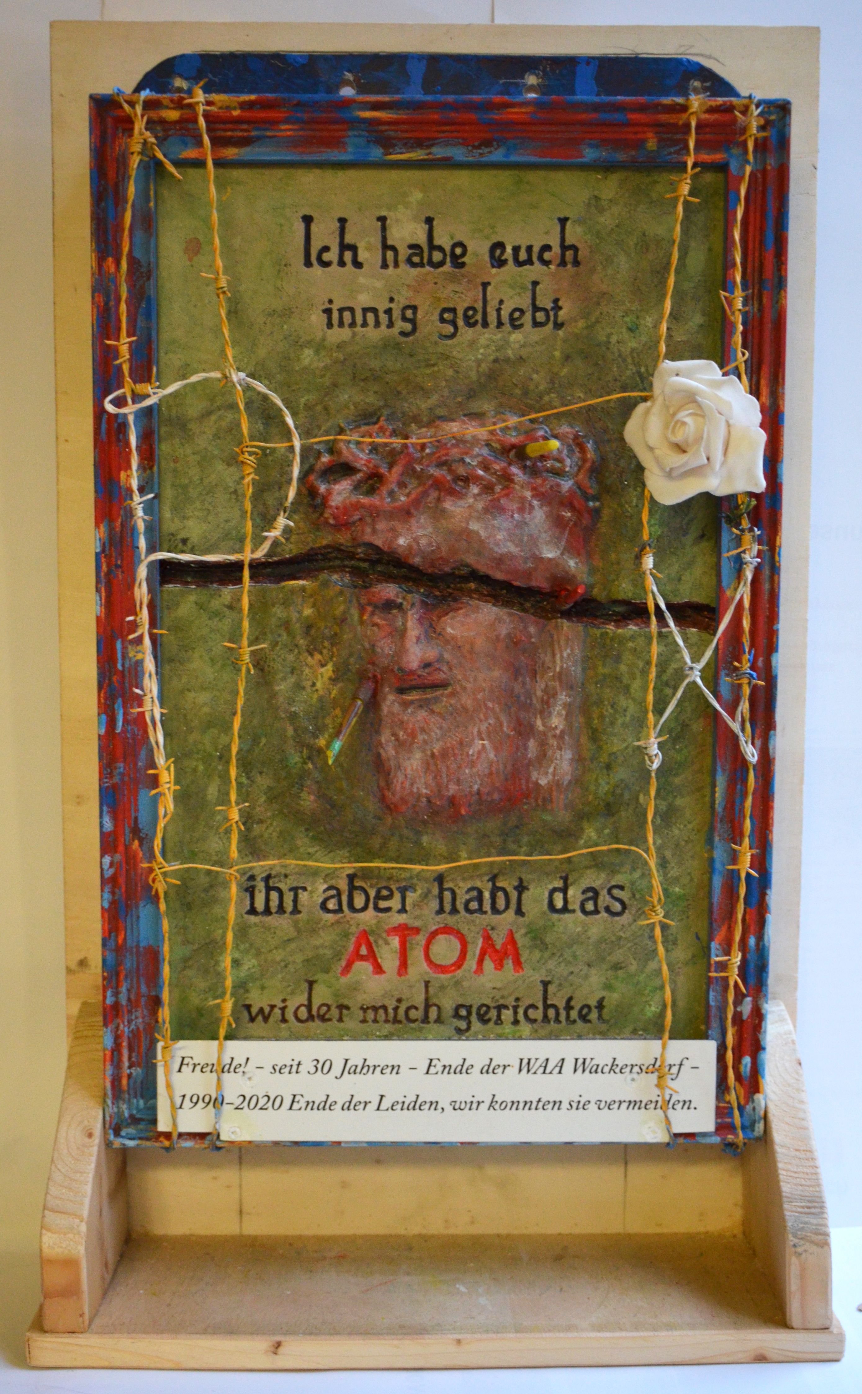 Relief mit Holzeinfassung, verschiedene Materialien, mit Rahmen ca. 75 x 45 x 15 cm, Preis: 200 Euro