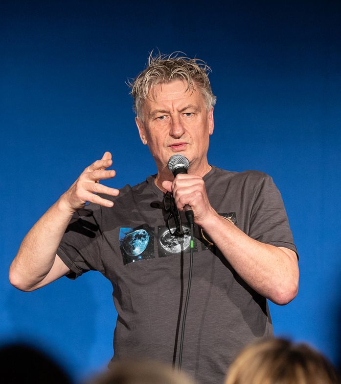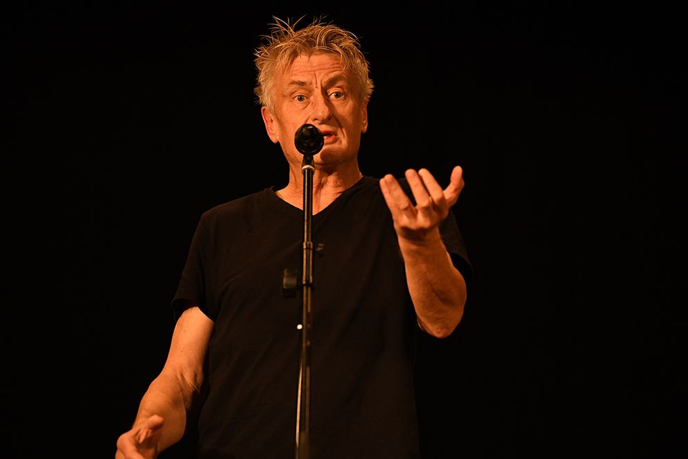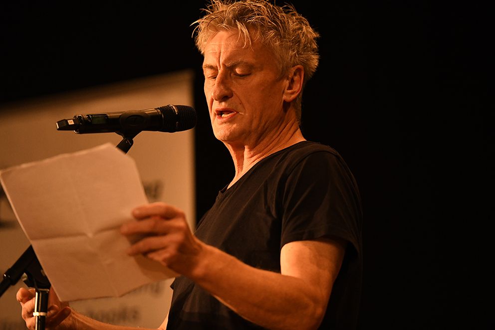 Für die kabarettistische Performance bei der Literaturrevue war Jaromir Konecny zuständig. Der Tscheche ist 1982 in die Bundesrepuplik emigriert und hat sich hier als Poetry Slammer mit sympathischem tschechischen Akzent einen Namen gemacht. Im lichtung verlag erscheint sein Buch „Du wächst für den Galgen“, in dem er über seine Kindheit zwischen katholischer Mutter und kommunistischem Vater berichtet.
