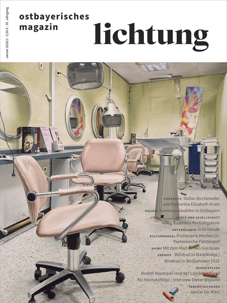 Portraits: Stefan Bircheneder und Katharina Elisabeth Kram | Politik: Kommunalwahlen in Ostbayern | Kunst und Gesellschaft: Oleg Kuzenkos Portraitgalerie | Unternehmen: licht-freude | Kulturwandel: Profanierte Kirchen (I): Portenkirche Fürstenzell | Sport: Mit dem Rad an den Gardasee | Energie: Windrad in Marklkofen / Windrad in Weißenstein 1925 | Heimatpflege: Rudolf Neumaier und der Landesverband für Heimatpflege / Interview Dieter Wieland | Veranstaltungen: Januar bis März