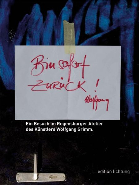 „Bin sofort zurück!“ ist ein bebilderter Rundgang durch das Regensburger Atelier des Künstlers Wolfgang Grimm, unternommen nach seinem Tode 2007. Das Atelier im ehemaligen Verladebahnhof in Regensburg, in dessen Nähe er verstarb, wurde inzwischen aufgelöst.