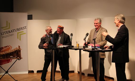 Links Hubert Ettl, Gerd Holzheimer, Bernhard Setzwein und Literaturhauschef Reinhard Wittmann im Werkstattgespräch.